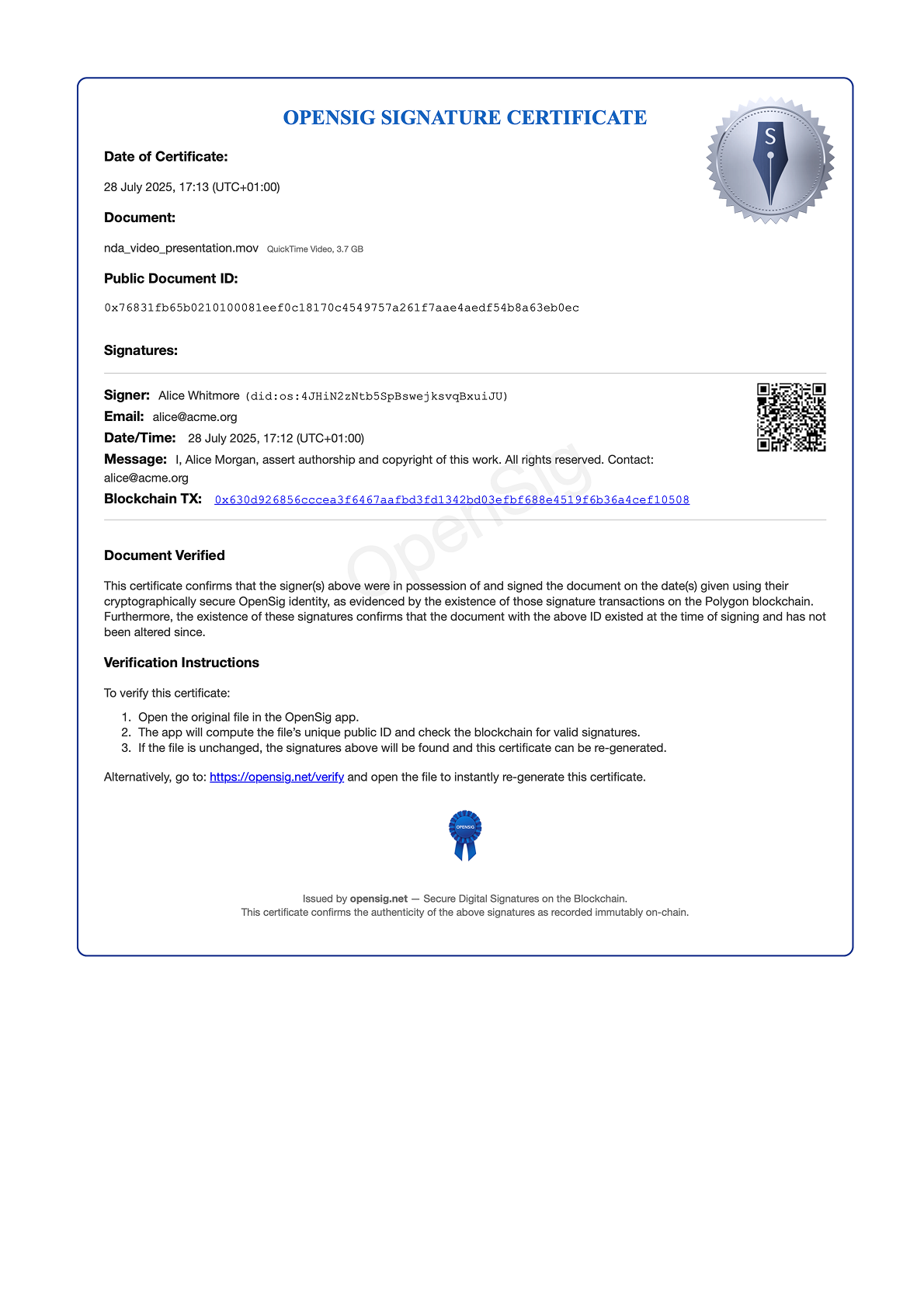 OpenSig gives us a single source of truth for our originals and our deals. We can prove when something was created and who signed off—without changing how we work.