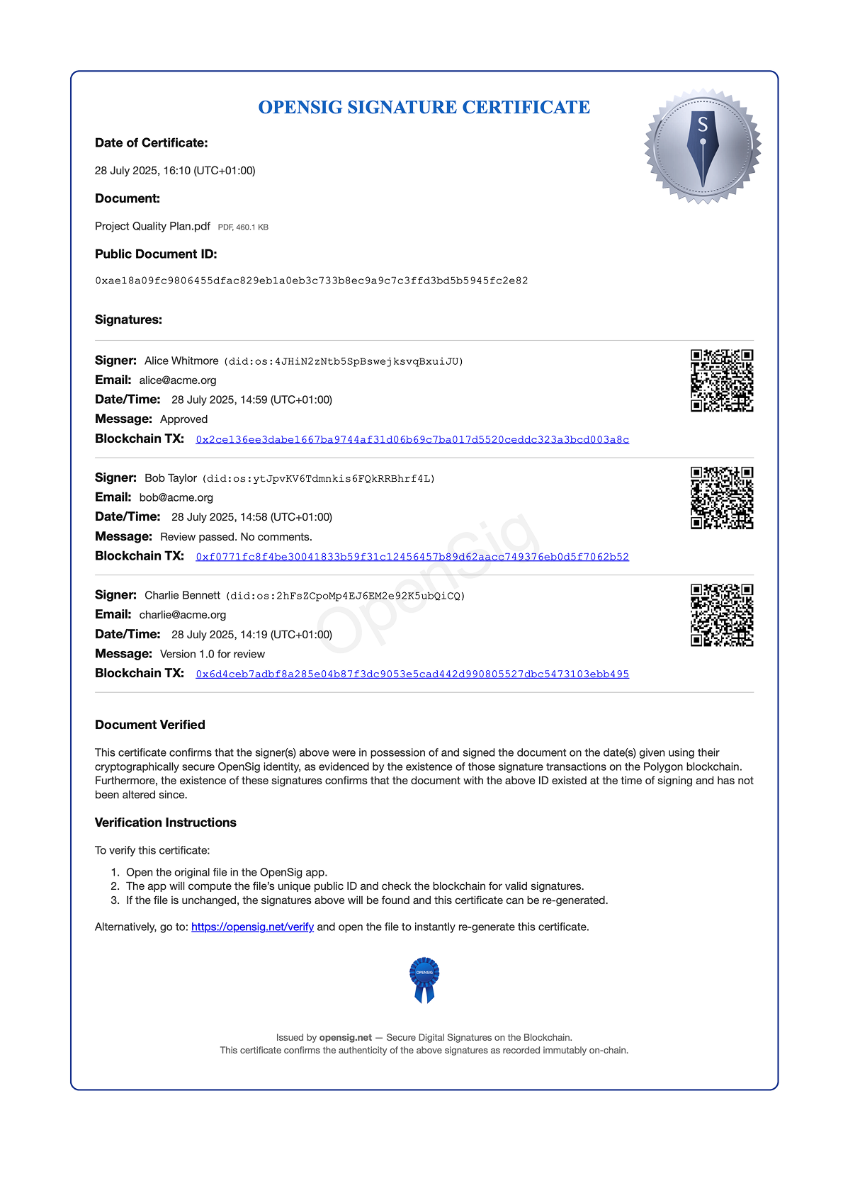 View a live example of OpenSig verifying the file why-web3.pdf, signed in May 2024.